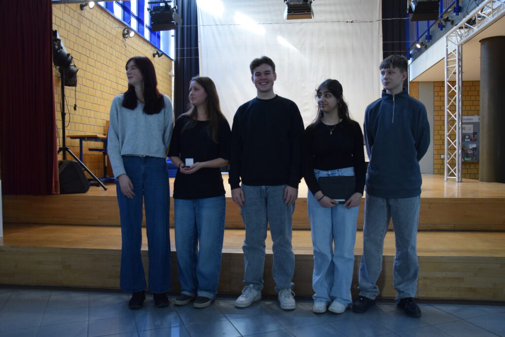 Mit der Verleihung des Hertzpreises 2026 startete unsere Schule auch in diesem Jahr gemeinsam in das zweite Halbjahr. Der Preis würdigt Schülerinnen und Schüler, die sich über mehrere Jahre hinweg mit großem Einsatz für die Schulgemeinschaft engagieren. In diesem Jahr wurden Mia Rosa Krause, Annsophie Roßler, Emil Vogler und das Technik-Team (Emil Vogler, Aliki Kalousiou, Charlotte Fechner, Konstantin Kandalow, Louis Winter, Sham Abd Alhk und Ben Schüritz) ausgezeichnet. Herzlichen Glückwunsch und vielen Dank für euren unermüdlichen Einsatz für unsere Schule!