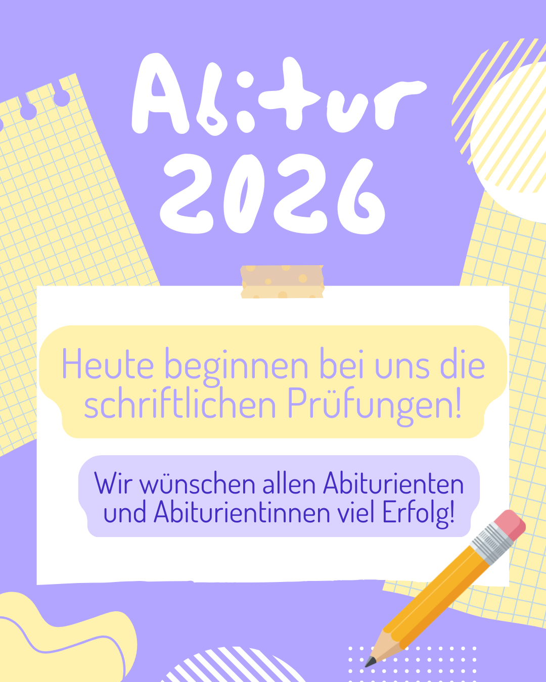 Heute, am 20.04., beginnen bei uns im Haus die Abiturprüfungen mit Geografie. Schriftlich enden sie am 06.05. mit Mathematik, bevor wir am 13.05. und am