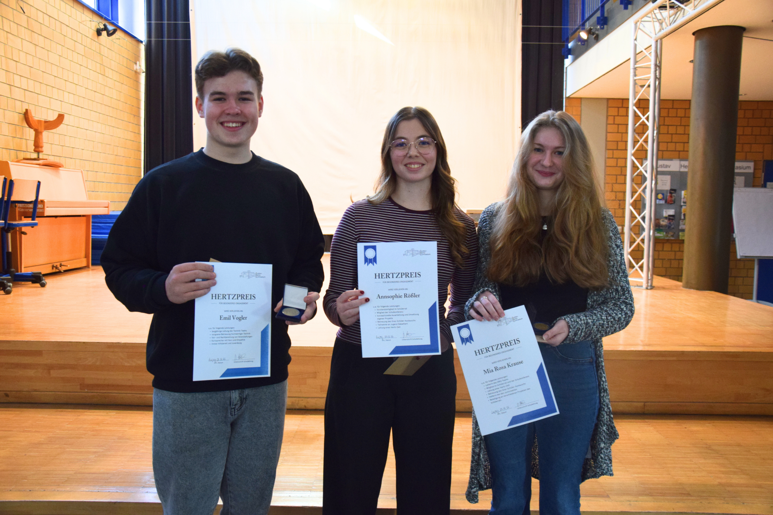 Mit der Verleihung des Hertzpreises 2026 startete unsere Schule auch in diesem Jahr gemeinsam in das zweite Halbjahr. Der Preis würdigt Schülerinnen und Schüler, die
